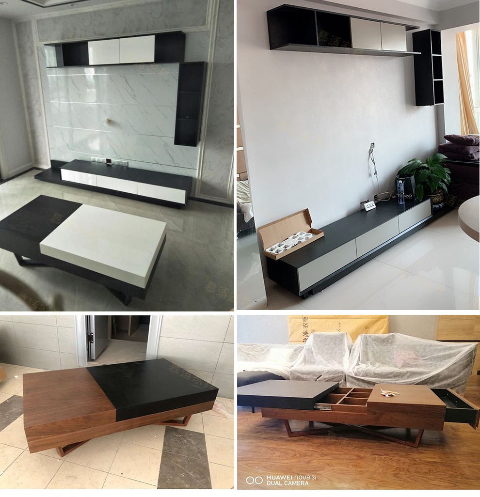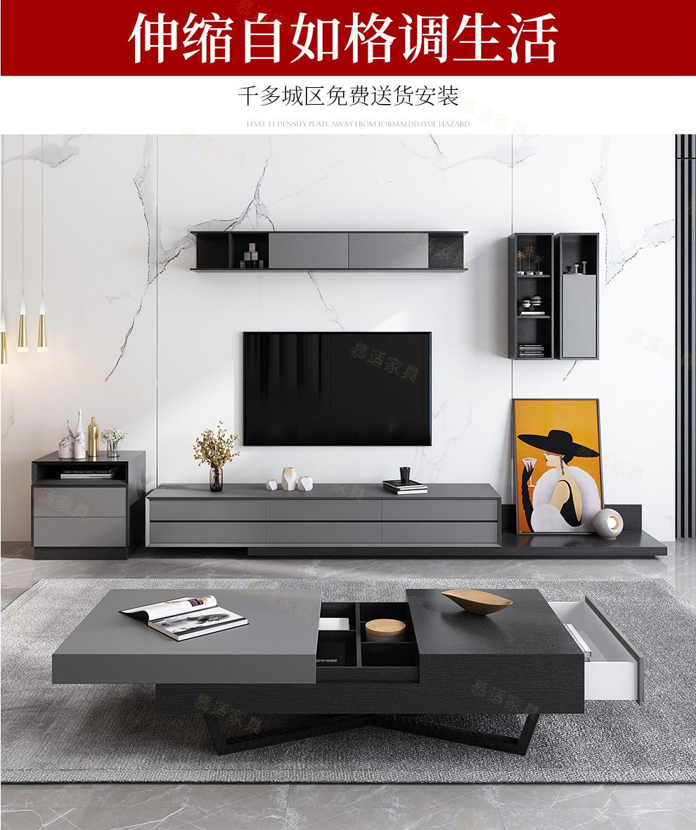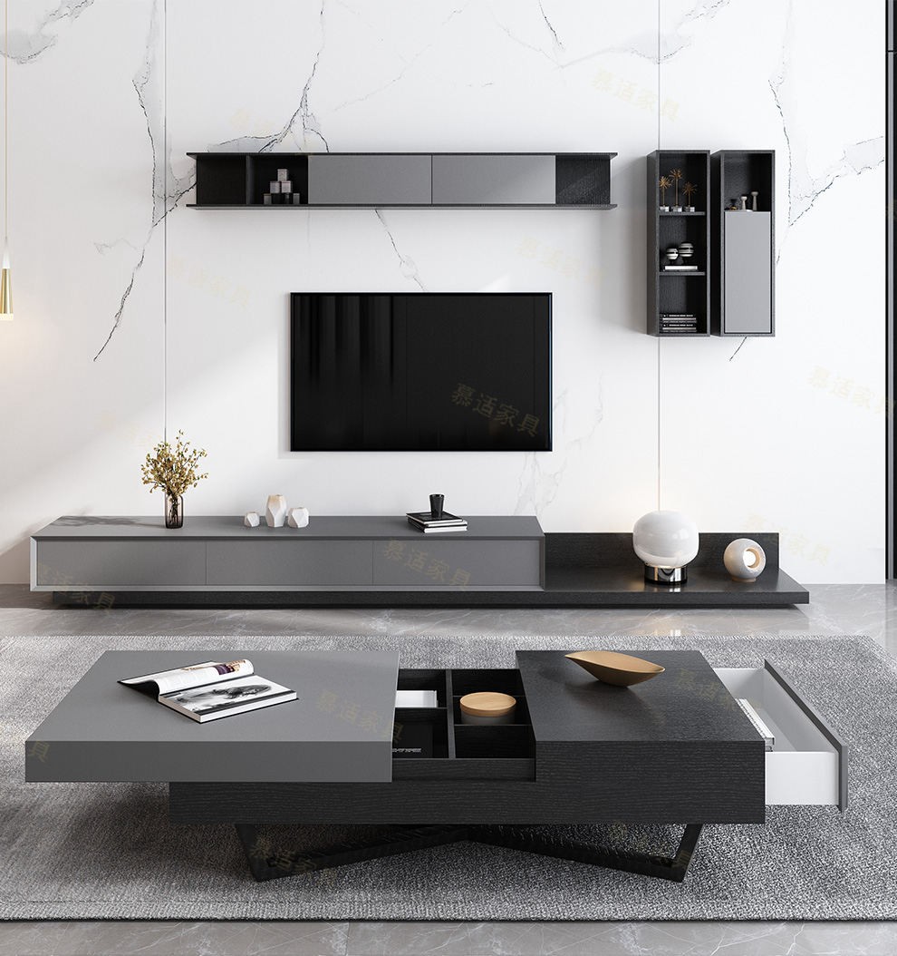 慕適茶の何意味式はきわめて簡単で小さい家型の客間の多機能が物を貯蓄してお茶のいくつかのテレビの箱の辺の棚のガーターの組合せの深さの灰色+黒色のオークの木の紋様の1.3メートルのお茶の何