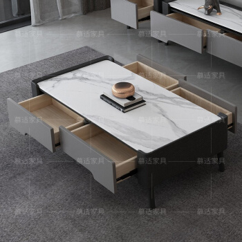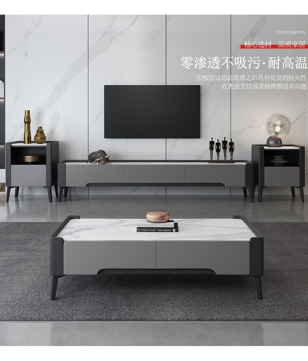 慕適茶の何意味式の極簡客間の岩板の茶の何のテレビの箱はカッラーラ塔の白い岩の板のデスクトップ【灰色の箱の身】の茶何+テレビの箱+斗の箱の1口の価格を組み合わせます4799