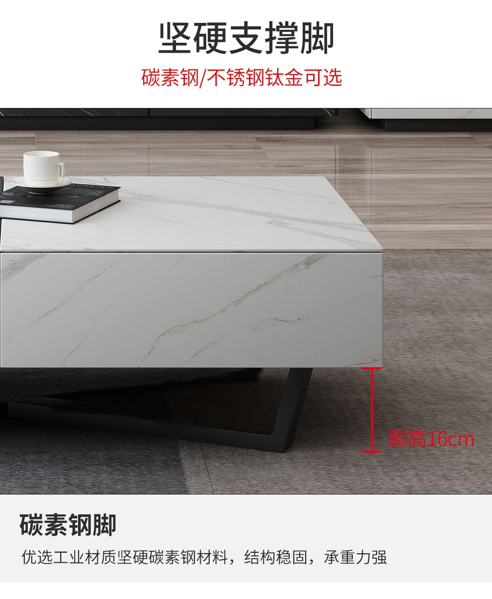 慕適茶のいくつかの岩の板の茶のいくつかのテレビの箱の組み合わせのスーツは軽奢で小さい戸型の客間の茶の何地の箱の斗の箱の組合せの白色の岩の板の表面の炭素の鋼の足の3斗の箱の1つを組み合わせます。
