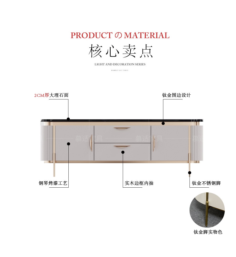 慕適は贅沢なお茶のいくつかのテレビの箱の組み合わせのスーツの大きさの戸型の別荘の客間が物の高級な大理石のお茶の何の軽い豪華な大理石の顔のお茶のいくつかのテレビの箱の組合せを蓄えることができます