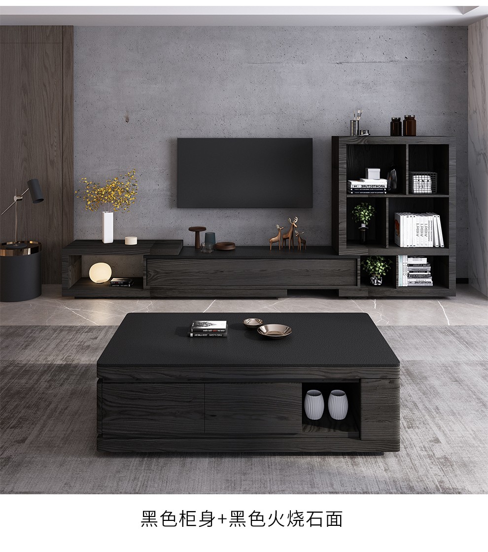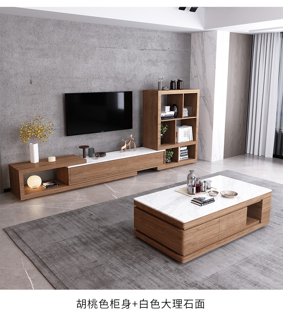慕適茶何北欧焼石茶何客間の小型大理石茶何か簡単なものを保管します。茶店とテレビのセットを組み合わせて、黒+白大理石茶何+地棚+サイドキャビネットを秒殺します。