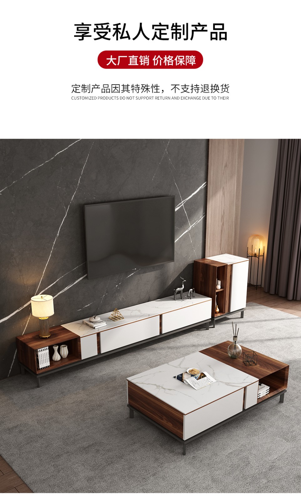 慕適茶のいくつかの岩の板の茶の何のテレビの箱の組合せのスーツの北欧の小さい家型の客間の物置きのお茶のいくつかの岩の板のお茶の何のテレビの箱+斗の箱の組合せ