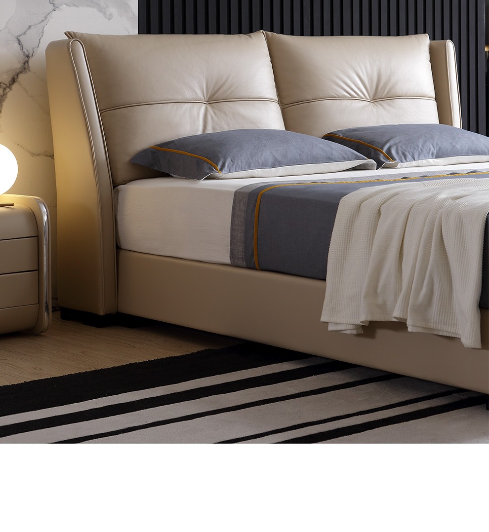 慕適ベッド層真皮ベッドイタリア式皮芸ベッド北欧ダブルベッドセット家具ソフト婚床アパートベッド黄色真皮ベッド1.5*2メートル