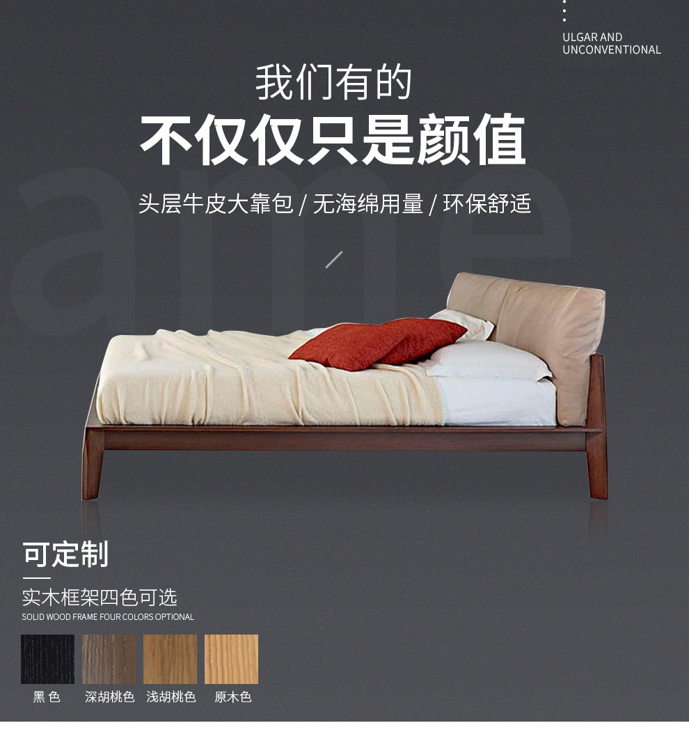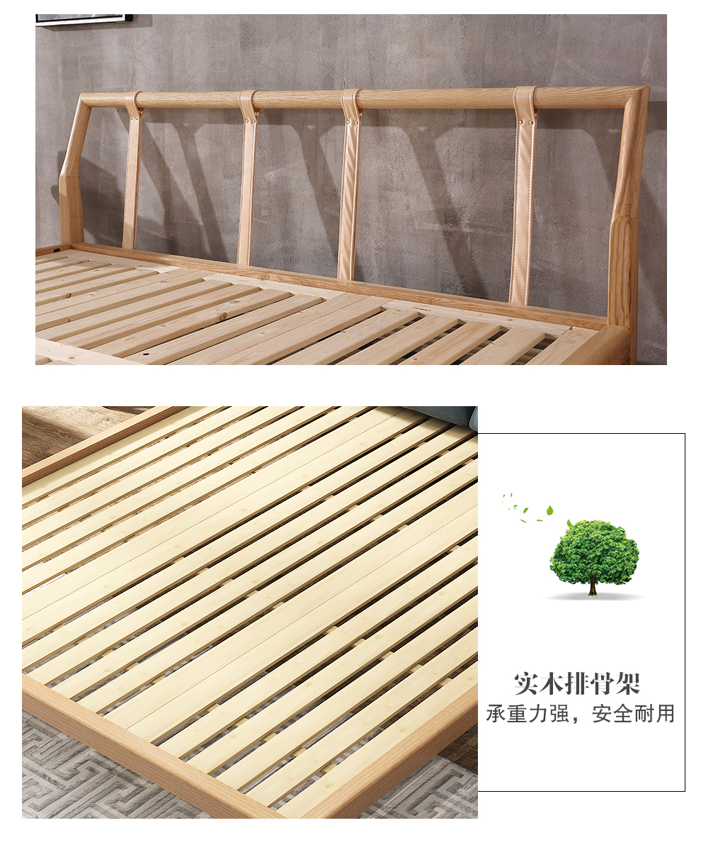 慕適ベッド北欧ベッドの実木ベッドのイタリア式の簡単なダブルベッドの白ワックスの木のベッドルームの家具の皮のベッドCX 22〓〓実の木のベッド(備考の色)1.8メートル*2メートルのベッドの棚の1枚(皮はカバン/布によってカバンに寄りかかります)