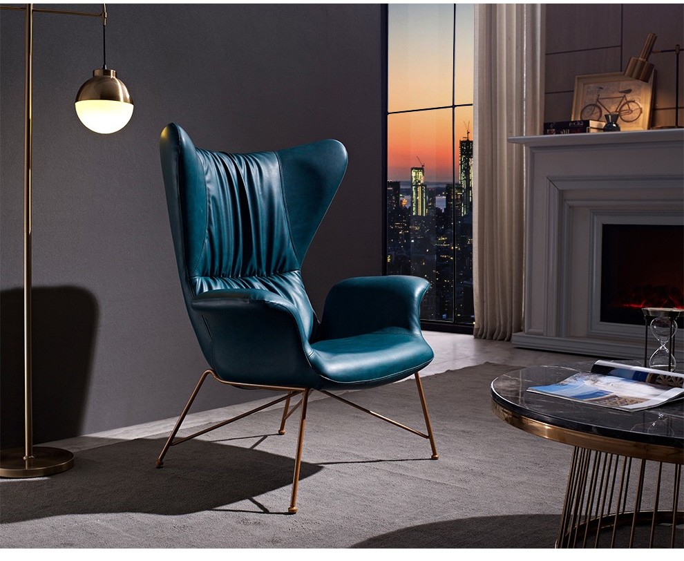 慕適ソファーのシングルソファと椅子の北欧デザイナーの革製ソファと椅子のイタリア式怠け者の小さなソファーとカジュアルソファーの鉄芸のシングルはソファーの寝室の金属足の軽い贅沢なソファーの西皮のシングル席を相談します。