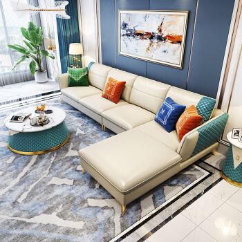 パバサのソファーの皮のソファーイタリア式の軽い贅沢な本革のソファーの角のソファーは簡単に客間L型のソファーを組み合わせてアメリカ式の軽い贅沢な皮のソファーの家庭用サイズのソファーのイタリアの輸入の頭の牛の皮(輸入の恒温のスポンジ+品質保証の15年)の双+単+貴妃