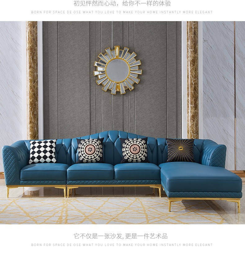 パバサソファアメリカ式軽奢な皮のソファヘッドの牛皮の新型軽奢なアイデアの真皮の後、現代の簡単な角度の組み合わせのリビングルームの小部屋型牛革のソファ家具イタリアの輸入皮革のペア+シングル+左貴妃