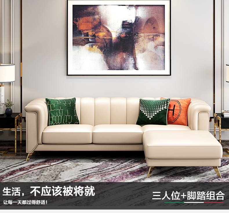 パバサ後の近代的な軽贅沢な回転角ソファアメリカ式本革ソファーL型ソファセットの大きさを組み合わせた部屋型リビングルームのセットオーダーメードサイズのイタリアの輸入ヘッド牛皮+輸入恒温スポンジの4人位(3メートル)+足