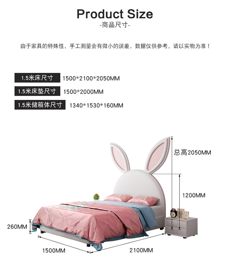 | 商品名称 | パバサベッドのウサギの皮のベッドの漫画のシングルダブルベッドの女子学生ins王女の布芸ベッドの科学技術の布のベッドの1800 mm*2000 mm高箱の構造を持ちます |