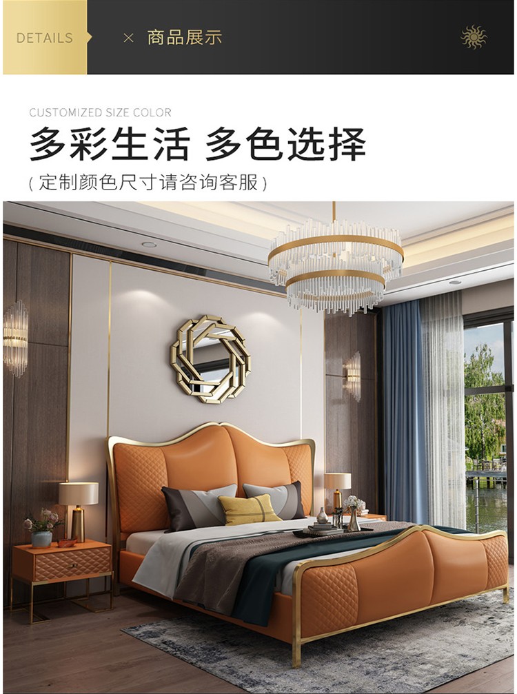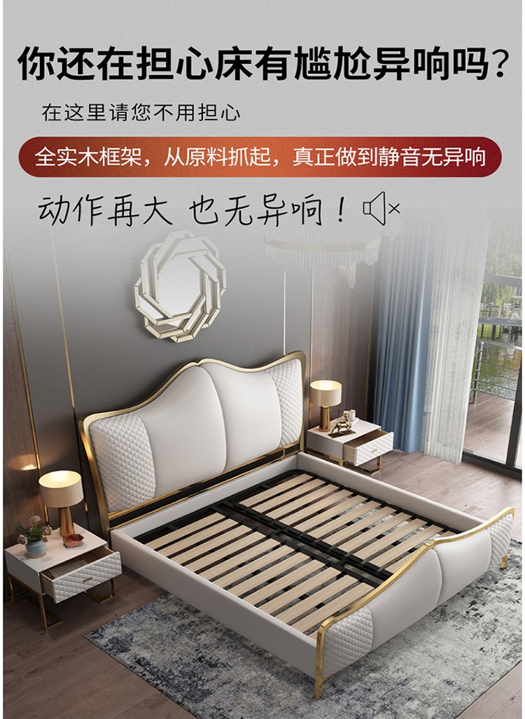 商品名称パバサ真皮婚床アメリカ式軽奢真皮ベッドダブルベッドルーム後現代簡約港式ネット紅ins風1.5メートル1.8メートルベッド大気結婚軟包ベッドハイエンド真皮ベッド1800*2000フレーム構造