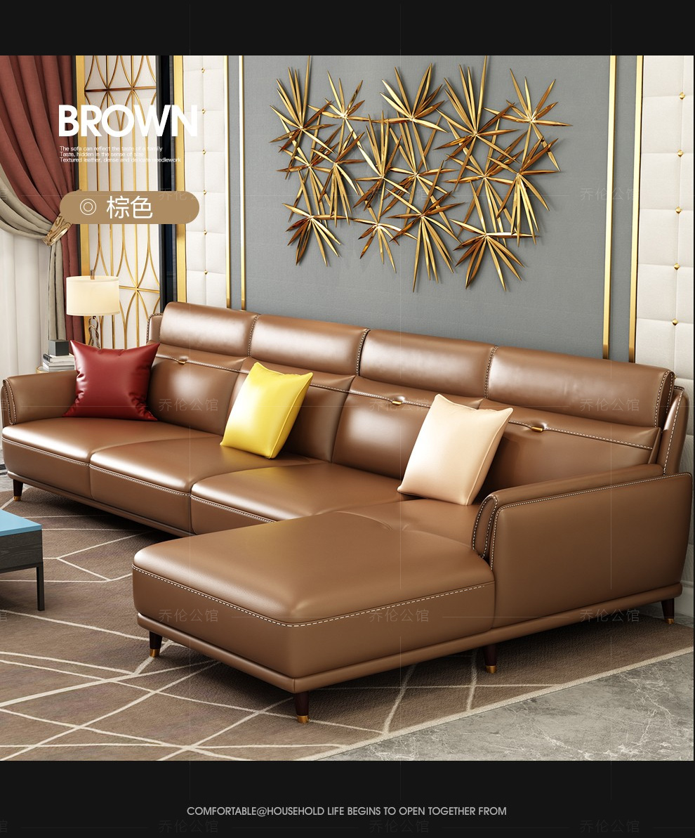 喬倫公館のソファーイタリア式の軽い豪華な大部屋型の皮のソファー客間の回転角多機能の皮のソファーの組み合わせの個性的なモデルルームの客間デザイナーのソファーの色の備考(カスタマイズして客服を問合せして下さい)の双手すりの3人+双手すりの2人+双手すりのシングル(茶を送るいくつかのテレビの箱)