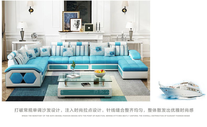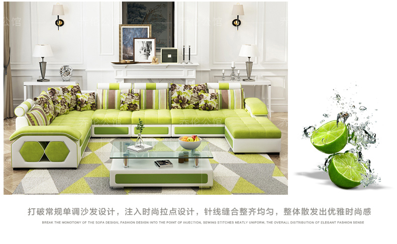 喬倫公館のソファー布芸ソファーのサイズはU型の戸型の皮のソファーです。現代簡単なリビングルームの家具と布芸ソファーのセットは分解して色の備考(カスタマイズしてカスタマーサービスに相談してください)を洗うことができます。