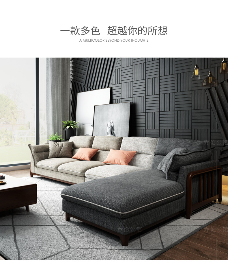 喬倫公館布芸ソファー北欧実木布芸ソファーの個性的な布芸ソファーベッドのリビングルームの大きさと部屋型の実木フレームの布芸ソファーの組み合わせ色備考(カスタマイズはカスタマーサービスにお問い合わせください)の三点セット(ツイン+シングル+貴妃位)