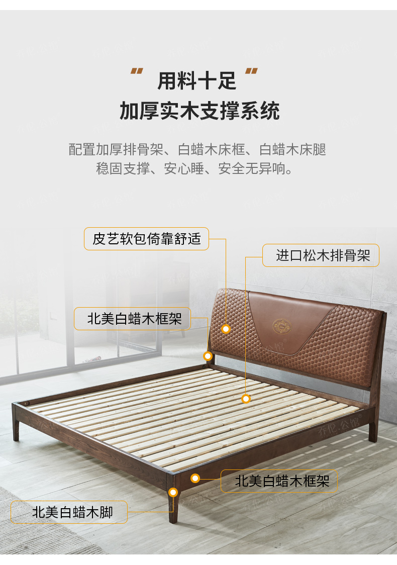 喬倫公館白蝋木床北欧白蝋木1.8メートルベルトは、柔らかい木製ベッドを持ち、現代の1.5メートルの簡単な寝室のツインベッドの白蝋木床の色備考書1.5メートルベッド+ヤギの絨椰の棕櫚マットレス+マットレス*1