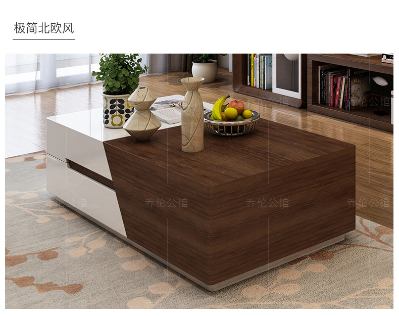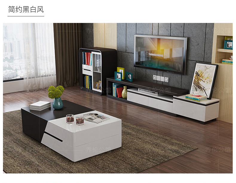 喬倫公館テレビキャビネット北欧簡約客間創意茶何テレビキャビネットの組み合わせは現代の木の副木の副木の倉庫の物が伸縮してテレビキャビネットの原木の色のお茶の何+テレビの箱+辺の箱の組合せに縮みます