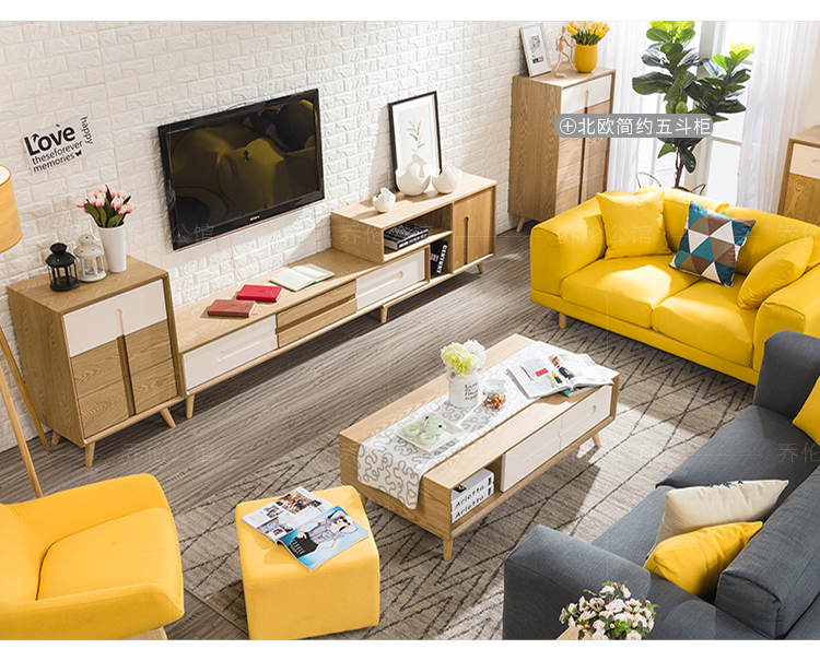 喬倫公館の個性北欧テレビキャビネット北欧実木茶何テレビキャビネットは簡単に個性的な客間創意茶何テレビの箱の組み合わせのピクチャーの色の全セットの組合せ(茶何+テレビの箱+斗キャビネット)